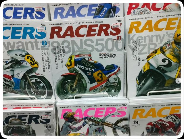 読んでも楽しい!見るだけでも楽しい!Racersは今だから出版できる昔のレースの情報が満載です。